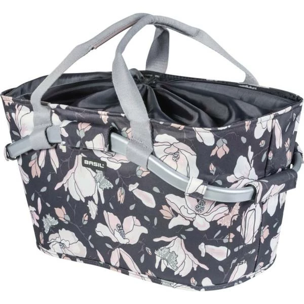 Basil mand Magolia, design fietsmand, achterop, lichtgewicht, afneembaar, afschuining zadelzijde, geschikt voor MIK systeemdragers, incl. voorgemonteerde MIK Adapterplate (70171), aansnoerkoord, hengsels, binnenvak,refl., 22L,pastel powders