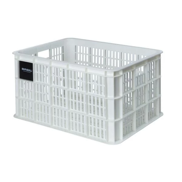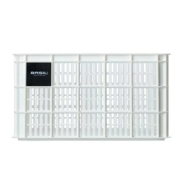 De krat is gemaakt van kunststof en heeft een trendy witte kleur.