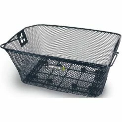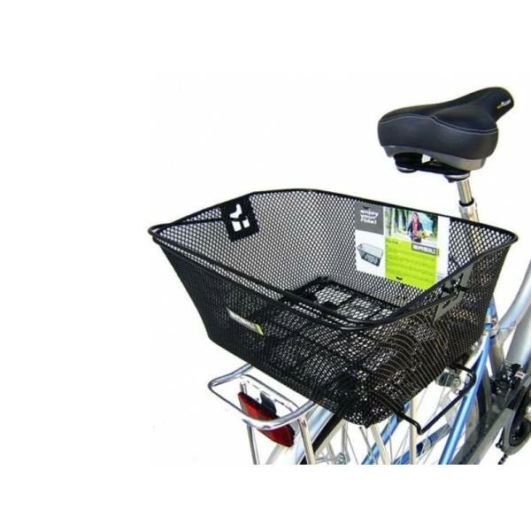 Deze zwarte fietsmand is gemaakt van fijnmazig staal en komt bij diverse gelegenheden goed van pas.