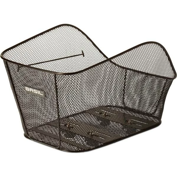 BASIL ICON L,fietsmand,klein,staal,fijnmazig, achterop,vaste montage gepat. WSL-system, eenv. montage,breedte/lengte instelbaar,geschikt voor dragers verhoogde voor/achterzijde,geschikt v. veel Ebike bagagedragers, lengter. op bagagedr., afgeronde vorm, zwart, 11209#