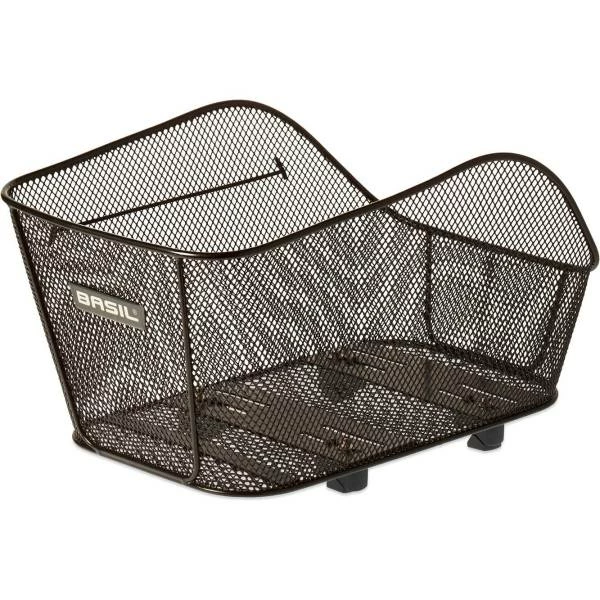 BASIL ICON M,fietsmand,klein,staal,fijnmazig, achterop,vaste montage gepat. WSL-system, eenv. montage,breedte/lengte instelbaar,geschikt voor dragers verhoogde voor/achterzijde,geschikt v. veel Ebike bagagedragers, lengter. op bagagedr., afgeronde vorm, zwart, 11208#