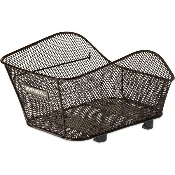 BASIL ICON S,fietsmand,klein,staal,fijnmazig, achterop,vaste montage gepat. WSL-system, eenv. montage,breedte/lengte instelbaar,geschikt voor dragers verhoogde voor/achterzijde,geschikt v. veel Ebike bagagedragers, lengter. op bagagedr., afgeronde vorm, zwart, 11207#