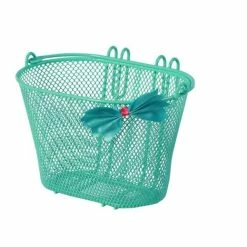 De Basil Jasmin kinderfietsmand is een ovalen mand van 12 op 20 inch voor op de kinderfiets in het mintgroen.