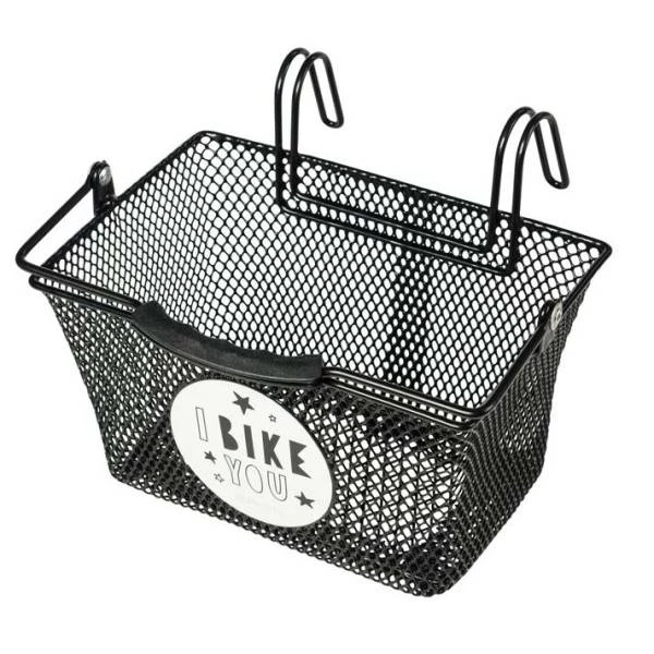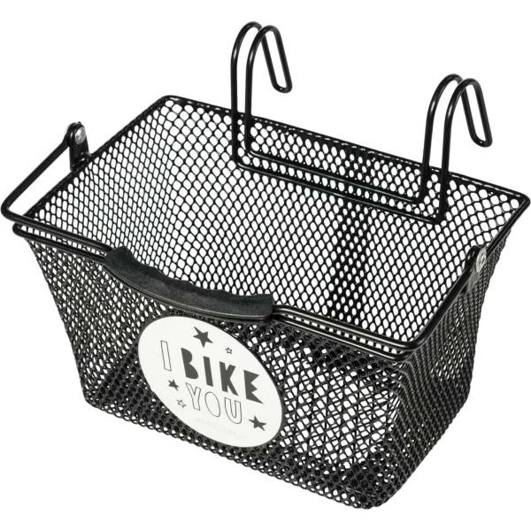 BASIL TIVOLI, kinderfietsmand, met stoere grote sticker, staal, fijnmazig, voorop, afneembaar, met veilige dubbel uitgevoerde stuurhaken, hengsel met kunststof grip, zwart