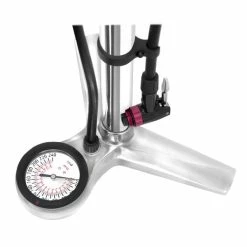 Hogedruk / hoog volume schakelaar die je met je voet kunt besturenBrede stalen basis voor eenvoudig pompenCorrosie bestendige behuizing en basis van aluminiumSlimme kop: klaar voor Presta & SchraderVerborgen naaldadapter en adapter voor kunststof ventielen160 psi / 11 barBar / psi analoge meter