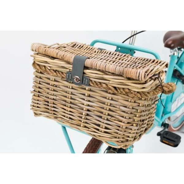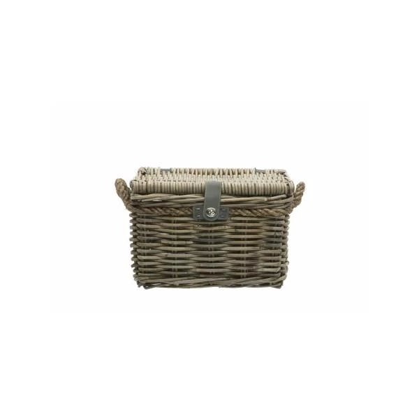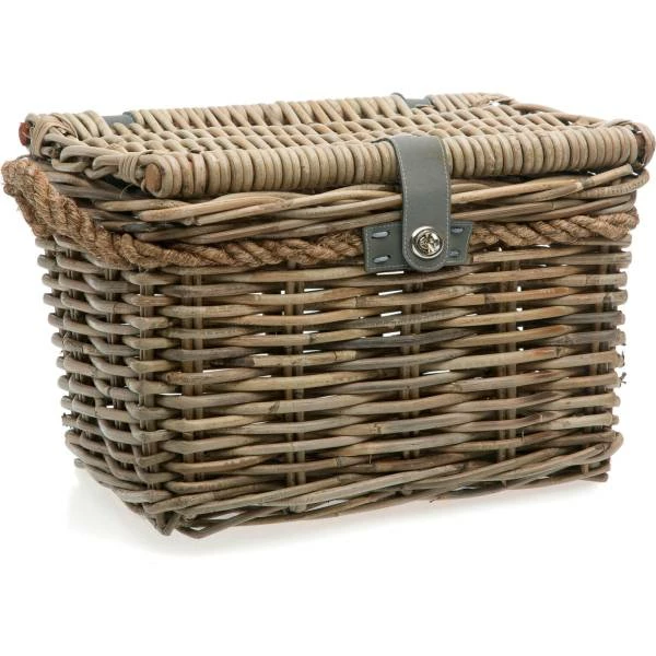#New Looxs mand riet Melbourne Medium met deksel en touw grey, 24 liter, 38 x 27 x 24cm, handige fietsmand voor montage op de voordrager, met deksel en draaisluiting, geen bev., Decoratief touw rondom mand wordt ook gebruikt als handvat.