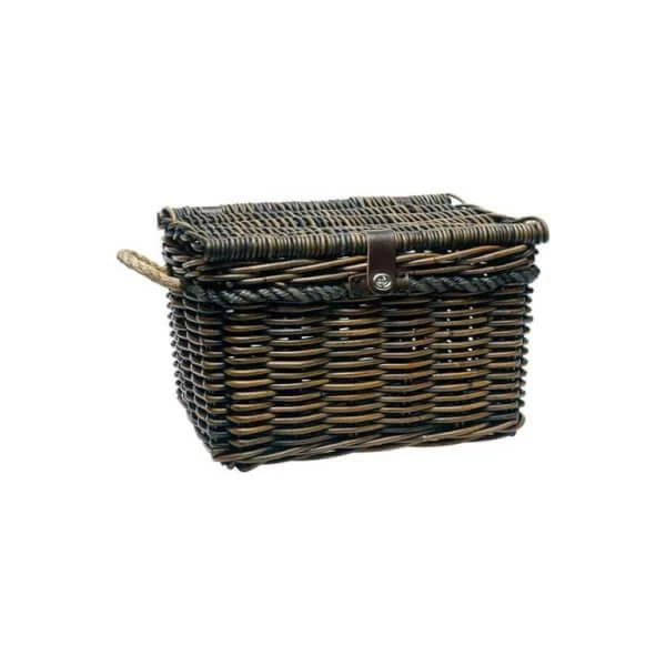 New Looxs mand riet Melbourne Medium met deksel en touw bruin, brown 38x27x24, handige fietsmand voor montage op de voordrager, met deksel en draaisluiting, geen bev.#