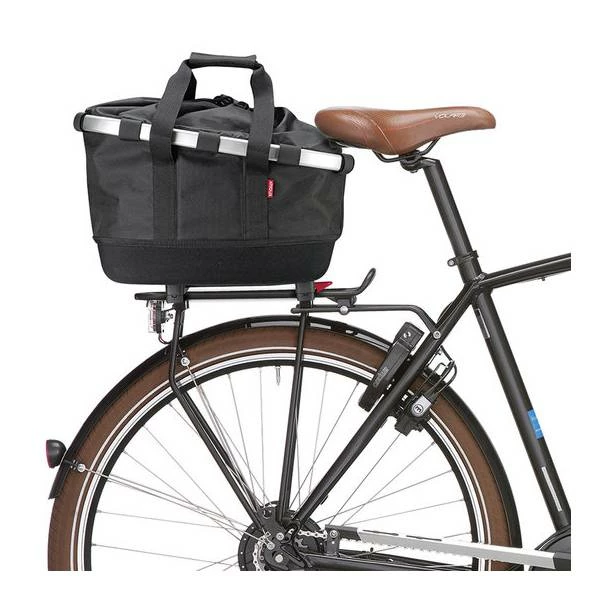 Het gebruik van manden, tassen en kisten met Racktime-adapter aan de onderkant vereist een specifieke Racktime-drager – gekenmerkt door vier gaten in hun kruisbeugels waaraan de adapter wordt bevestigd.