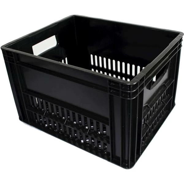 transport / bagage krat kunststof zwart met geperforeerde bodem, afmetingen: ca 43x35x27 LxBxH