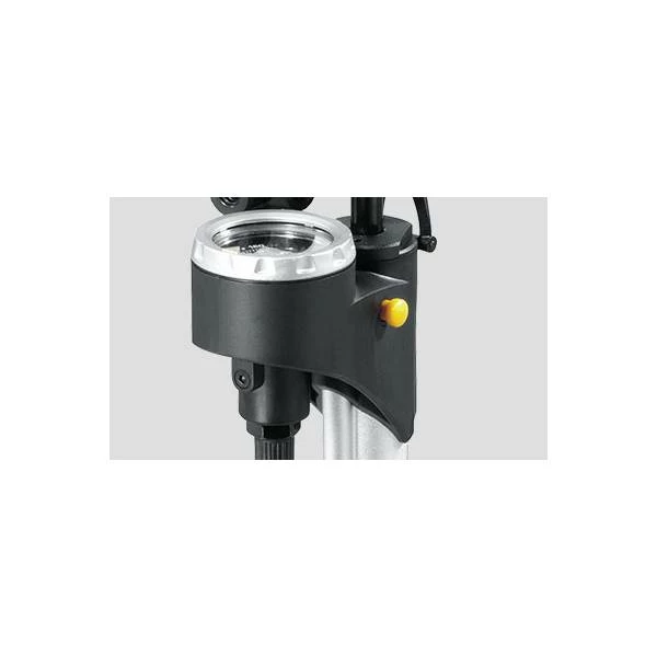 De stalen voet maakt de pomp zeer stabiel, ondanks de hoog geplaatste drukmeter.